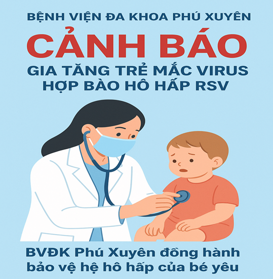 💬 Nhóm  Bác sĩ Chuyên gia nhi khoa của Bệnh viện đa khoa Phú Xuyên gồm: BSCKII. Trần Trí Bình – PGĐ Bệnh viện cùng cộng sự Bs Hoàng Đức Tuyên đã có công trình nghiên cứu “Nghiên cứu đặc điểm dịch tễ học lâm sàng và một số yếu tố liên quan đến trẻ viêm tiểu phế quản nhiễm virus hợp bào hô hấp (RSV) tại khoa Nhi – BVĐK Phú Xuyên” đã được nghiệm thu, kết quả được Hội đồng chuyên gia y tế đánh giá cao đã được đăng trên Tạp chí Y học dự phòng (Tập 35, Số 2 -2025) khuyến cáo: “Viêm tiểu phế quản do RSV có thể trở nặng rất nhanh. Cha mẹ cần đặc biệt chú ý trong mùa cao điểm virus RSV, đặc biệt với trẻ dưới 2 tuổi. Hãy theo dõi sát và đưa trẻ đến khám sớm tại cơ sở y tế uy tín khi trẻ có các dấu hiệu: sốt trên 38,50, thở nhanh, thở khó, thở khò khè, bú khó hoặc bỏ bú…sẽ giúp hạn chế các biến chứng nặng như viêm tiểu phế quản, viêm phổi hoặc suy hô hấp” ⚠️ Tuyệt đối không tự ý dùng thuốc ho, kháng sinh hay thuốc xịt mũi khi chưa có chỉ định của bác sĩ!
